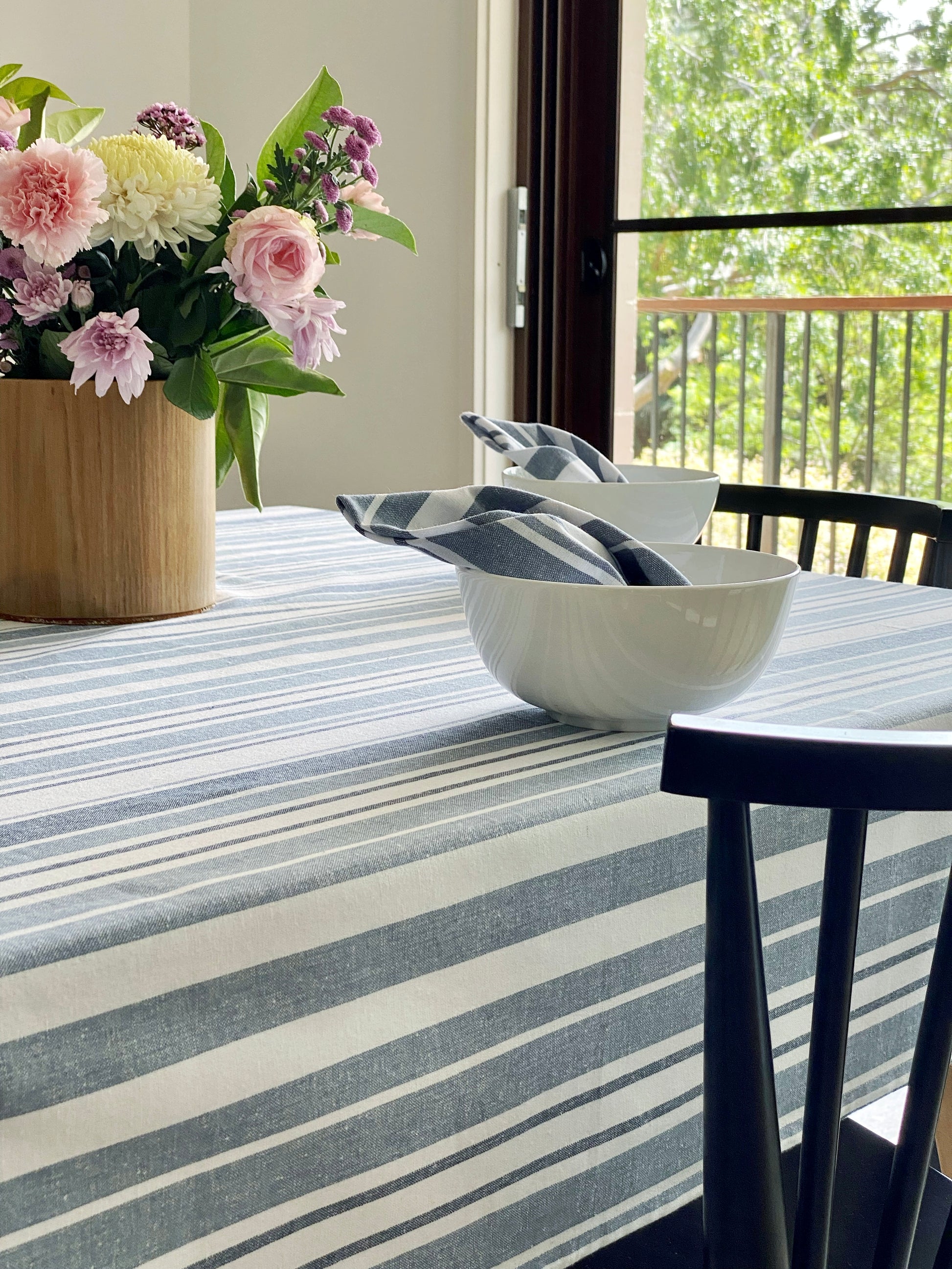 Blue Stripe Cotton Tablecloth
