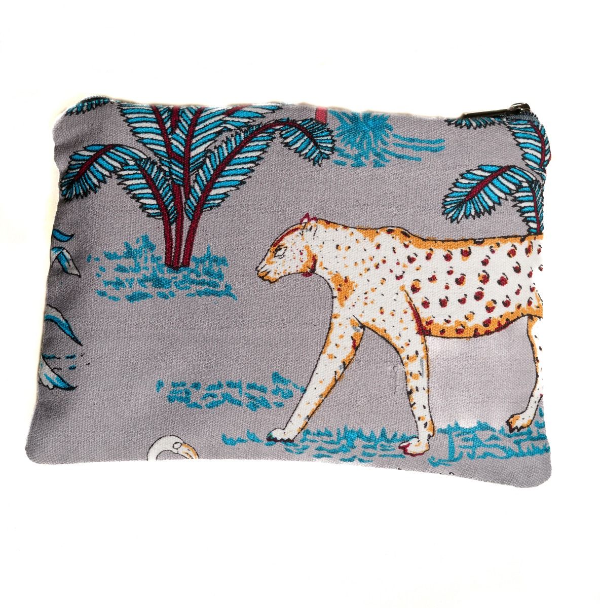 Cotton Cosmetic Pouch with Pale Grey Jungle Design