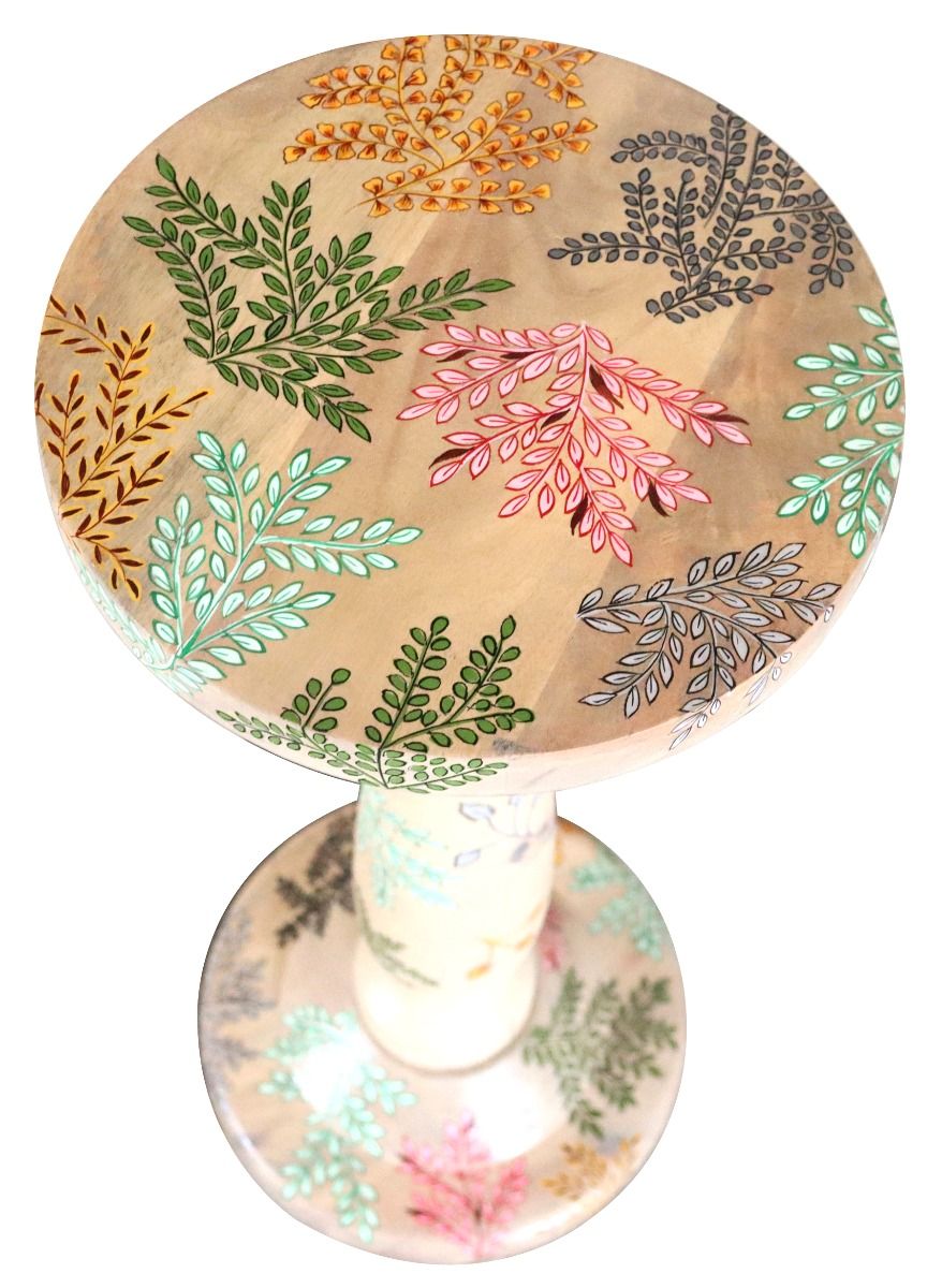 A beautifully handcrafted solid wood table with an incredible hand painted leaf design all over the top, stem and base. This kind of quality can't be mass-produced it's tediously done with great precision and made to stand out.