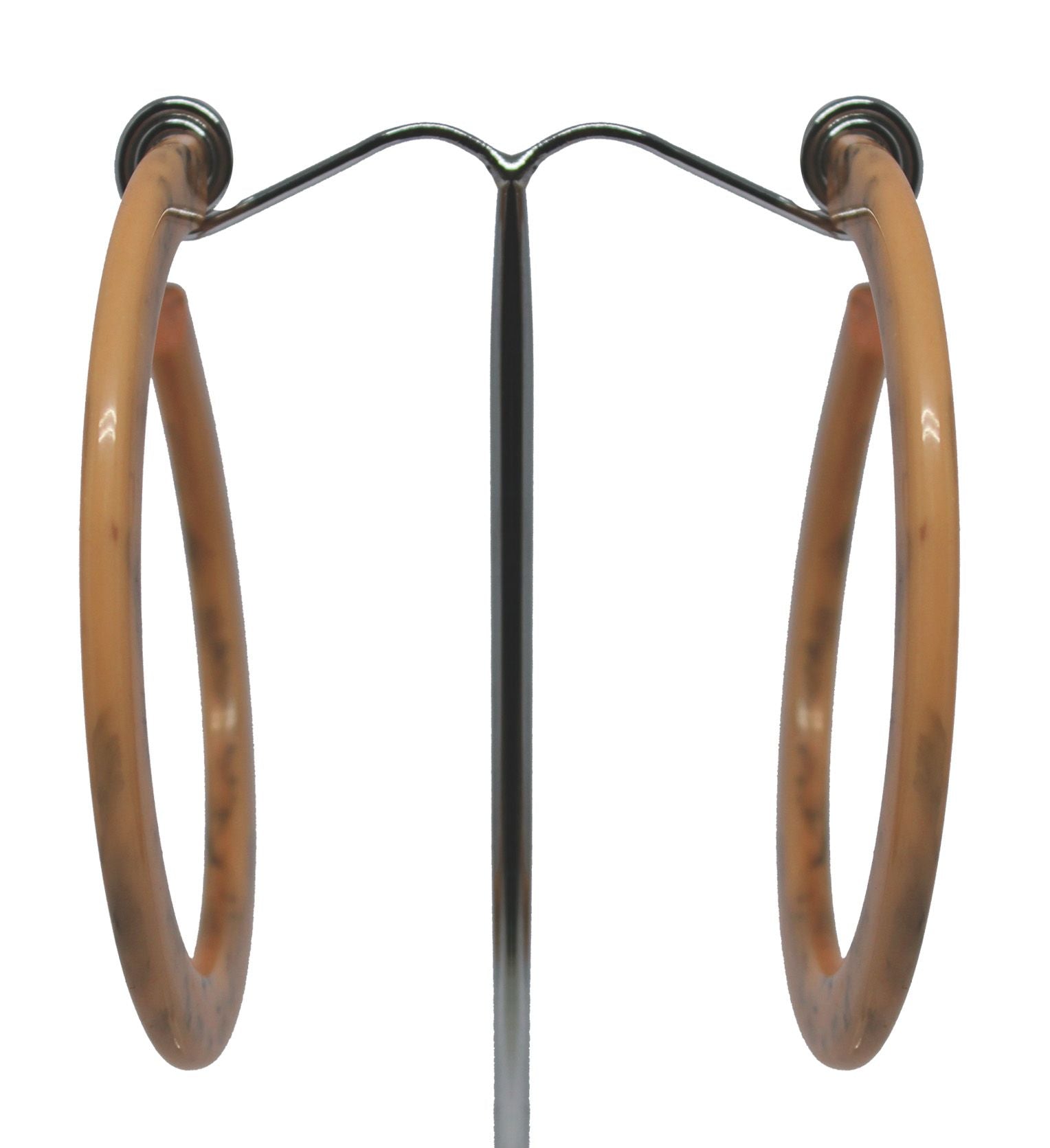Beautiful resin hoop earrings with marbled peach design.
