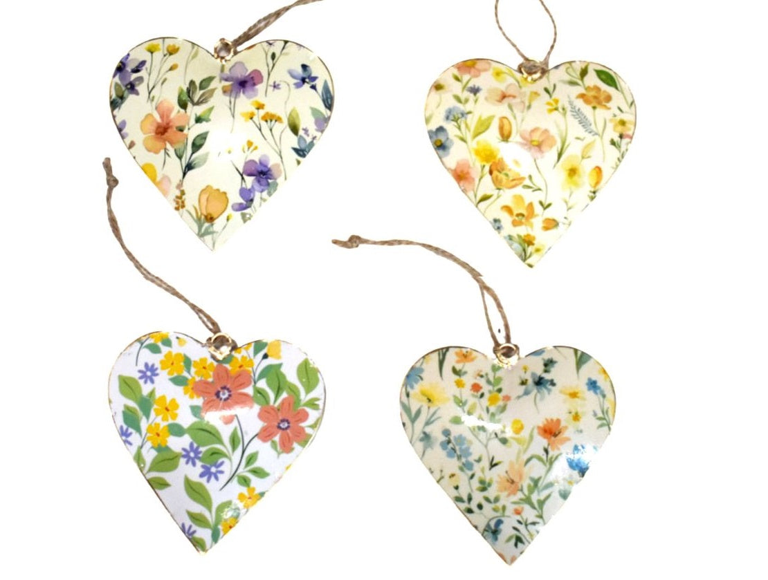 Beautiful set of 4 handcrafted tin hearts with wild flowers. Perfect to add to your decor, or give as cute little gifts to employees, colleagues, teachers, friends, family and anyone else you care about.