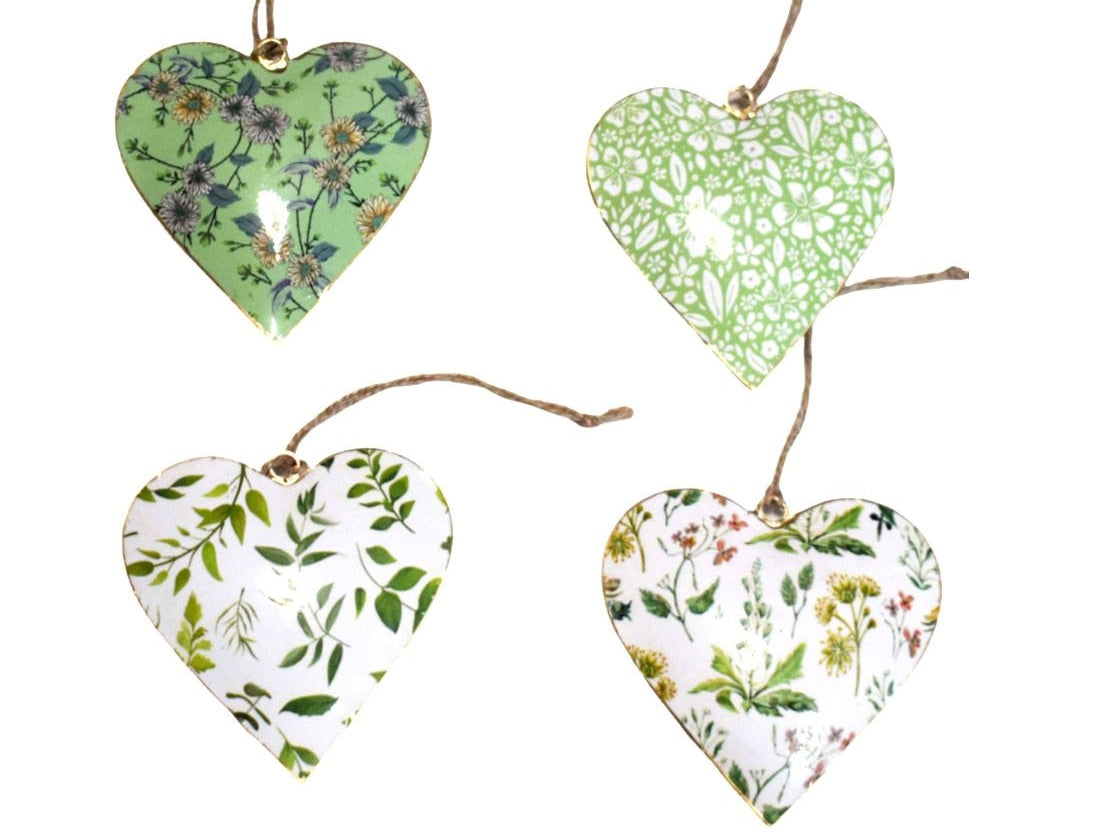 Beautiful set of 4 handcrafted tin hearts in white and green theme with floral and leaf designs. Perfect to add some subtle colour to your decor, or give as cute little gifts to employees, colleagues, teachers, friends, family and anyone else you care about.