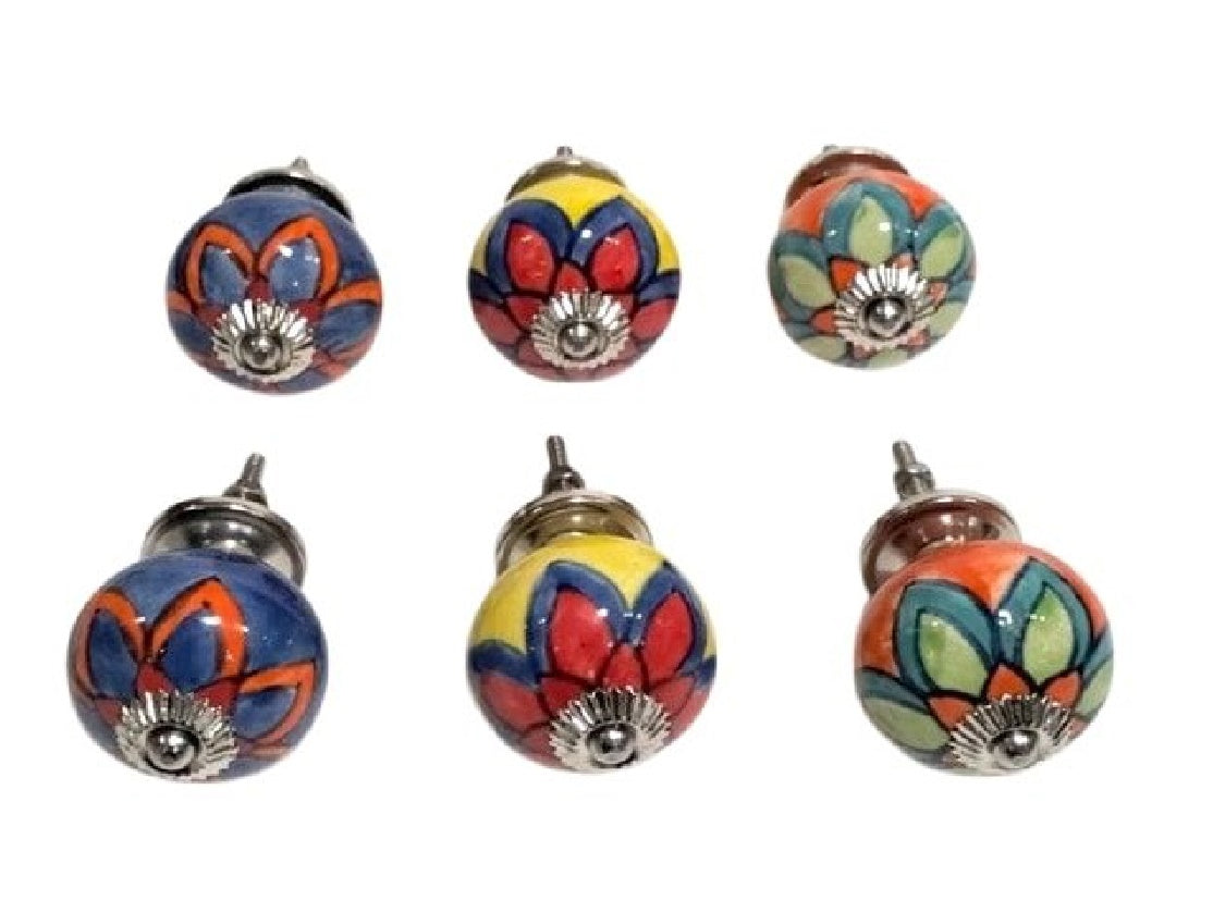 Set of 6 hand painted bright flower round knobs with beautiful silver accents.