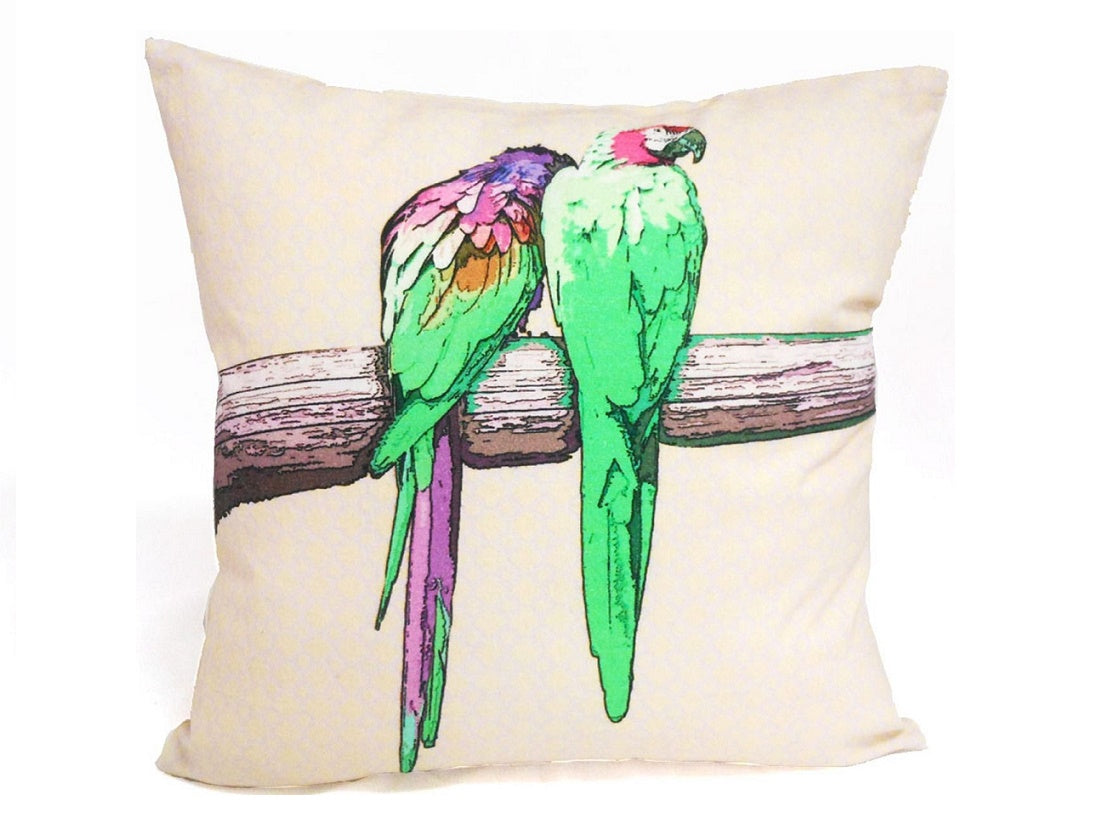Two green budgies cushion