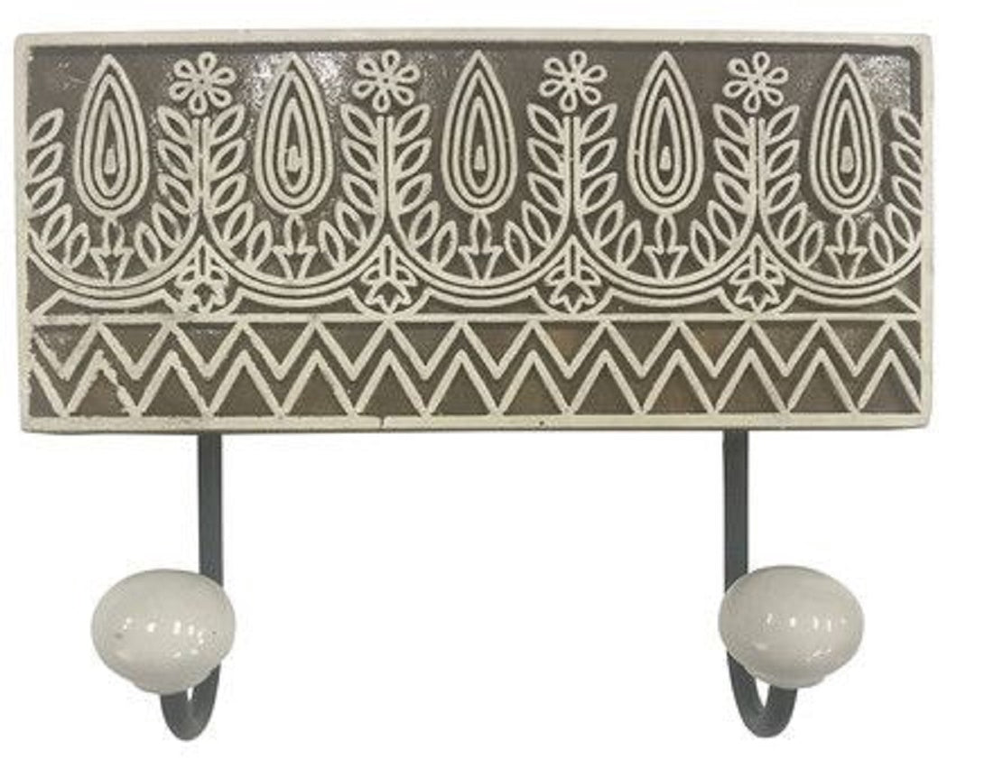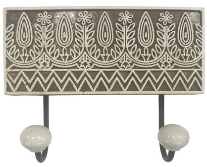 Wooden Double Wall Hook with Printed Design